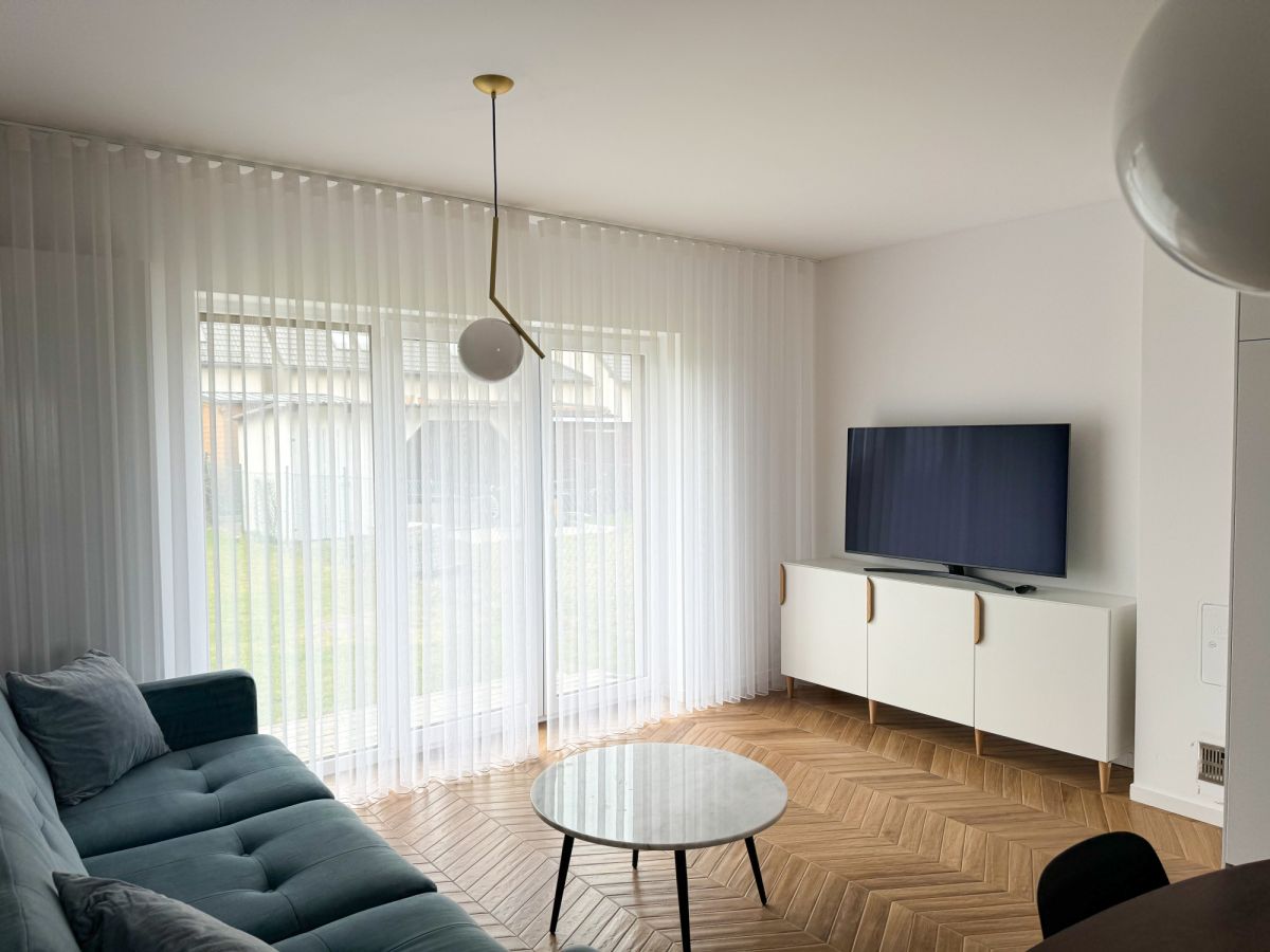3 sypialnie + salon z aneksem kuchennym, WC, łazienka, taras, ogródek, garaż.
